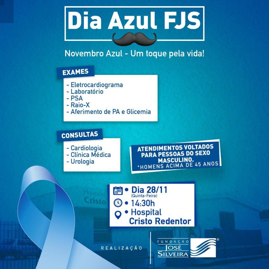 Como parte da campanha Novembro Azul na Bahia, a Fundação José Silveira vai promover o “Dia Azul” no município de Itapetinga. A ação será realizada na próxima quinta-feira (28), a partir das 14h30 no Hospital Cristo Redentor.