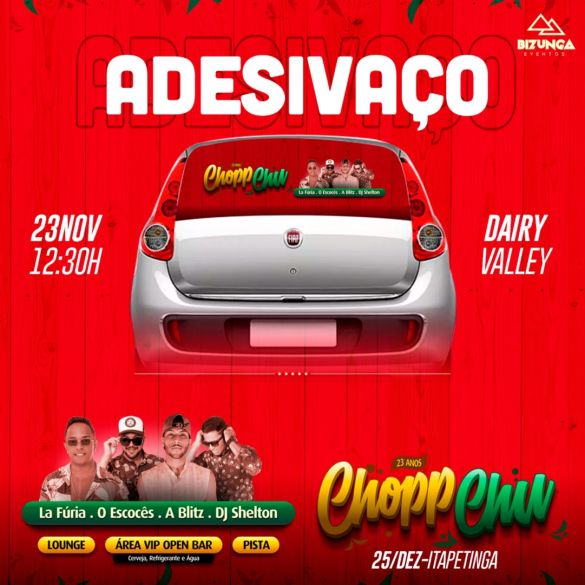 Bizunga Eventos, realiza neste sábado (23) o Adesivasso do Chopp Chu 2019
