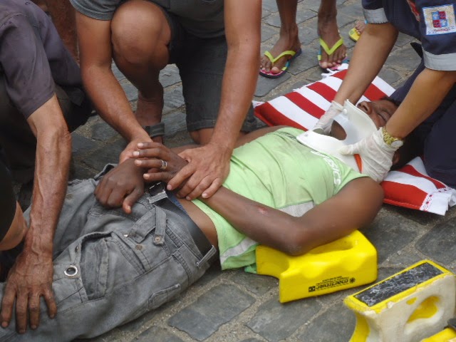 Os Agentes da Comutran controlou o transito e o SAMU/192 efetuou os primeiros socorros e conduziu a vitima para o hospital Cristo redentor. O júnior trabalha em um posto de lavagem de caminhão nas proximidades da Lagoa. IsrraelDamaceno/G1cidade