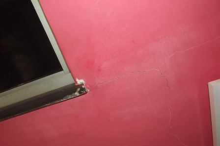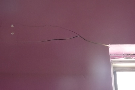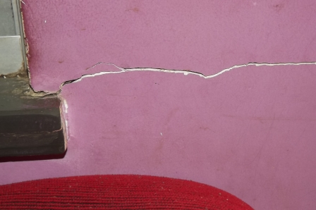Infelizmente foi constatado que as casas, realmente estavam danificadas. Várias rachaduras nas paredes, próximo a porta, banheiro, na escada e no teto.