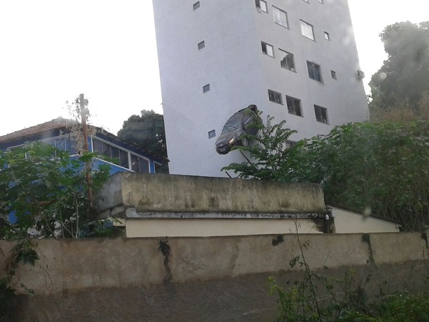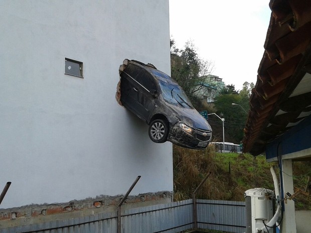 Um motorista confundiu os pedais e o carro que dirigia acabou ficando preso na parede da garagem no segundo pavimento – a uma altura de 15 metros. O caso aconteceu na manhã desta sexta-feira (14) em Colatina Velha, na cidade de Colatina, no Espírito Santo (ES).