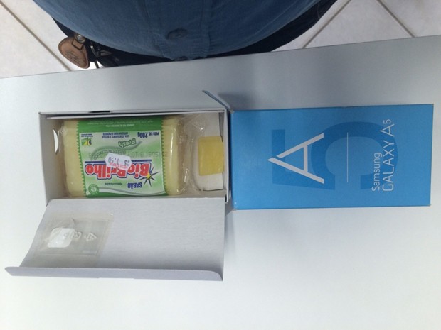Um empresário do município de Teixeira de Freitas, no extremo sul da Bahia, comprou um lote de celulares e recebeu uma barra de sabão no lugar de um dos aparelhos. “Fiquei surpreso demais.