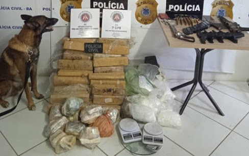 Dois homens foram presos com 154 kg de drogas e armas, nesta segunda-feira (22), em uma operação conjunta entre as polícias Civil e Militar, no município de Mascote, sul da Bahia.