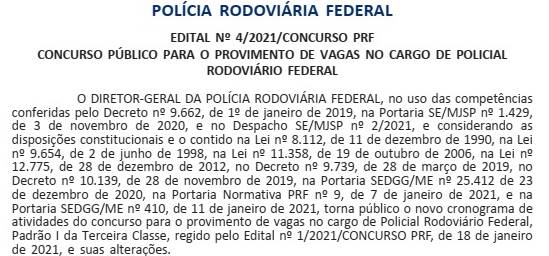 A Polícia Rodoviária Federal (PRF) publicou, no Diário Oficial da União (DOU) desta quarta-feira (24/3), a confirmação das provas em 9 de maio. Os locais serão divulgados em 30 de abril. Inicialmente, a prova estava marcada para 28 de março, mas teve de ser adiada devido à pandemia do novo coronavírus.
