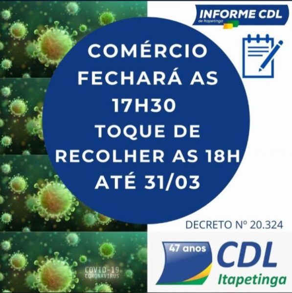 O governo do Estado publicou o Decreto nº 20.324 antecipando o toque de recolher para as 18h em todo estado, aumentando restrições e o comércio segue fechado aos finais de semana até o final do mês.