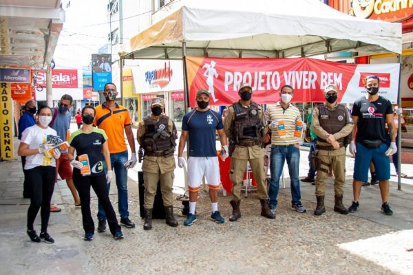 A Blitz do Projeto Viver Bem levou informação e proteção ao centro de Itapetinga. Na Alameda Ruy Barbosa, a equipe da Secretaria de Cultura, Esporte e Lazer, com o apoio da Secretaria da Saúde, CDL e da Polícia Militar, passou informações sobre a importância da prática regular do exercício físico para o aumento da imunidade e para uma melhor resposta no tratamento da COVID-19.