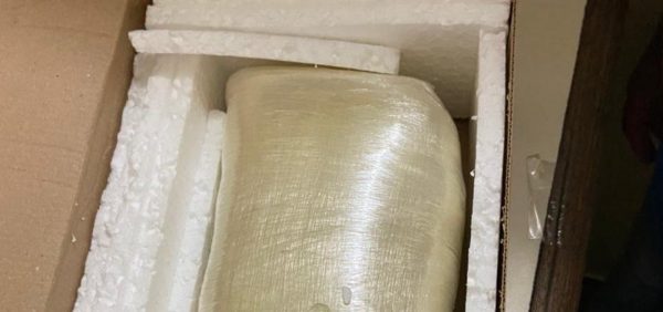 Com isso, na manhã de hoje, o destinatário suspeito compareceu à agência dos Correios para retirada da encomenda, quando foi abordado por policiais militares. Foi constatado que dentro da caixa havia um pacote envolto em fita adesiva contendo cerca de 1 kg de cocaína. Anexada à correspondência estava uma nota fiscal declarando tratar-se porcelana.