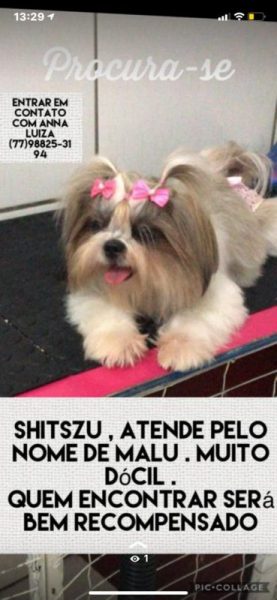 Na manhã deste domingo (26) por volta de 12h uma Cadelinha da raça SHIH-TSU que atende pelo nome de “Malu”, encontrou o portão da casa aberto no bairro Quintas do Morumbi, nas proximidades da Cooleite/ Coopardo e infelizmente, saiu de casa e até agora não foi encontrada.