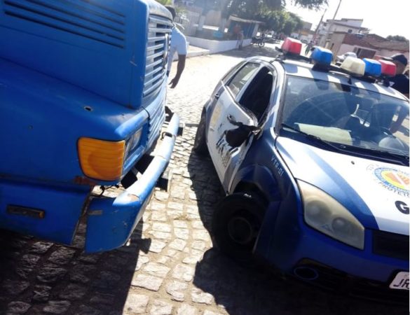 ITAMBÉ: CAMINHÃO DESENGRENA E ATINGE BARREIRA SANITÁRIA E VIATURA DA GCM